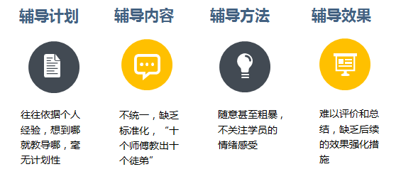"70-20-10"原則表明,員工能力的提升僅有10%可以在課堂培訓(xùn)中解決,90%是通過(guò)實(shí)踐學(xué)習(xí)獲得的。由此,由傳統(tǒng)“師帶徒”模式演變而來(lái)的導(dǎo)師制成為現(xiàn)代企業(yè)人力資源培訓(xùn)與開(kāi)發(fā)的一種重要方式,據(jù)統(tǒng)計(jì),目前世界500強(qiáng)中有70%以上的企業(yè)都在使用導(dǎo)師制,國(guó)內(nèi)一些企業(yè)也先后引入了企業(yè)導(dǎo)師制,然而在實(shí)際推行的過(guò)程中面臨越來(lái)越多的難點(diǎn): |