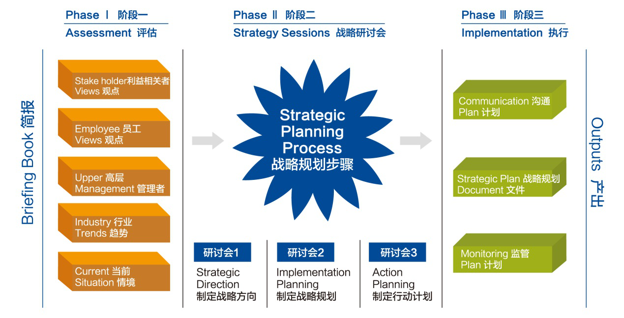 戰(zhàn)略共創(chuàng)的三個階段:評估階段,規(guī)劃階段,執(zhí)行階段。