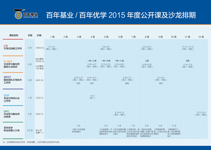 百年基業(yè)/百年優(yōu)學 2015年度公開課及沙龍排期表