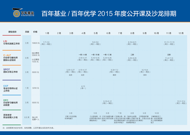 百年基業(yè)/百年優(yōu)學 2015年度公開課及沙龍排期表,